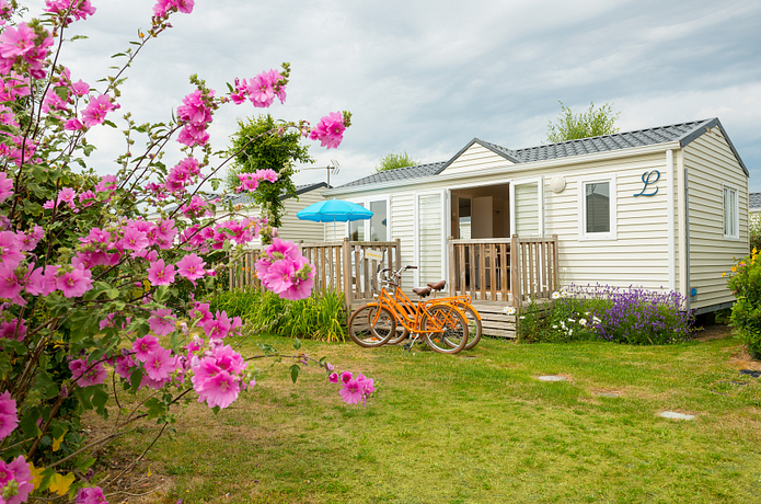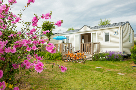 Ingerichte keuken (servies, magnetron, koel-vriescombinatie, kookplaat, filterkoffiezetapparaat, enz.), eet/zithoek met tv. Badkamer (douche, wastafel). wc. Buiten: terras, tuinmeubelen, vouwstoelen.
